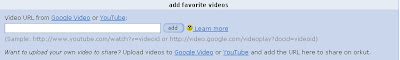 Or else they can upload their own videos to either Google Video or YouTube and share it through Orkut.
