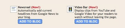 Google Ajax Search API Team introduced two very useful widgets for Blogger blogs, Newsreel and Video Bar.