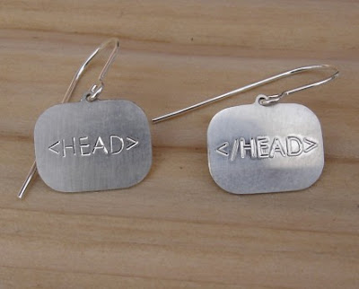 Here is a pair of earrings which is carved with HTML tags on one and on other.