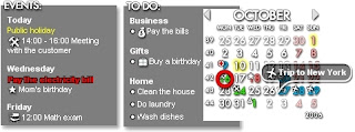Set Events and To-do list: You can add the forthcoming events in the Events list also the you can list the works in To-do list, to plan your schedules. You can even set alarm prior to an event, also there is option for highlighting due events.