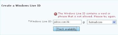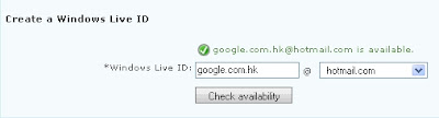 If you try to create a Windows Live HotMail ID with a name contains “Google” like Google.com.hk, it will say that the id google.com.hk@hotmail.com is available. See the image below.