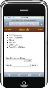 The pages of Bible also loads quickly over EDGE. Since Search and Jump are easily available from any chapter, you doesnt have to go to a different search page. This web application also offers the ability to download an IMAP version to your iPhone or iPod touch, so that you can have Bible as an offline application in your iPhone.