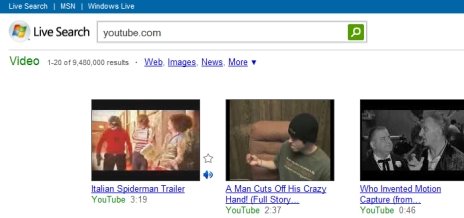 It may happen to most of the people at work and school, to be deprived of favorite online video sharing sites. Especially to those who in middle east. There is a workaround to watch videos from YouTube, Metacafe, Google videos, Yahoo Videos and ifilm, even if these video sites are blocked at your work place and school. In order to do this live search should not be blocked.